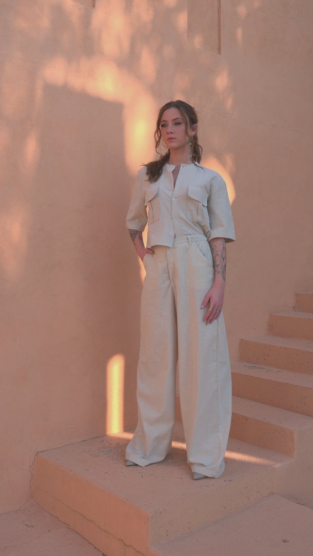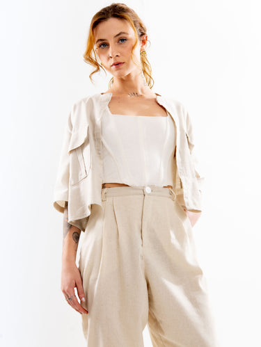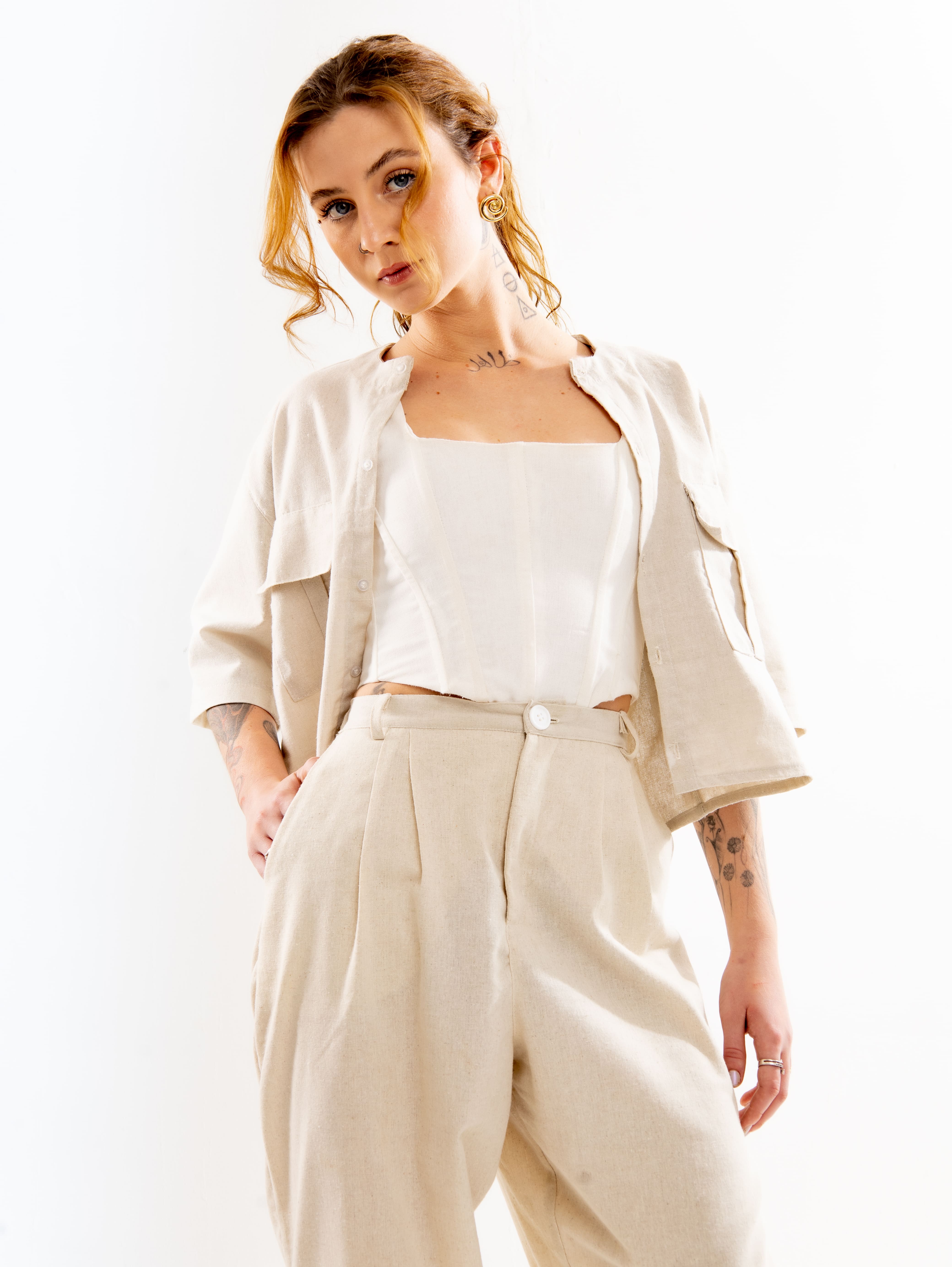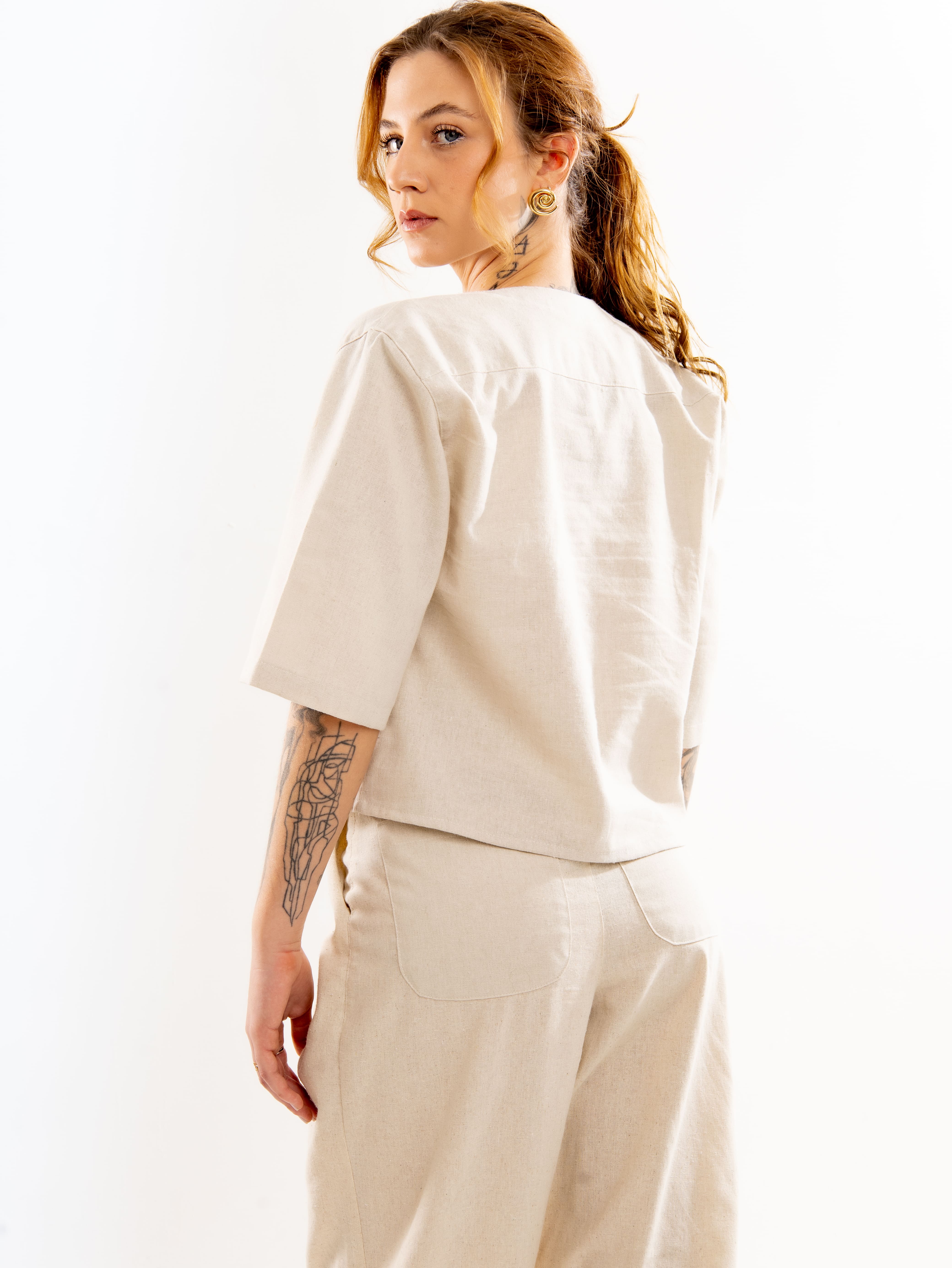 A Camisa Magnólia combina elegância e praticidade com dois bolsos frontais funcionais e fechamento em botões.