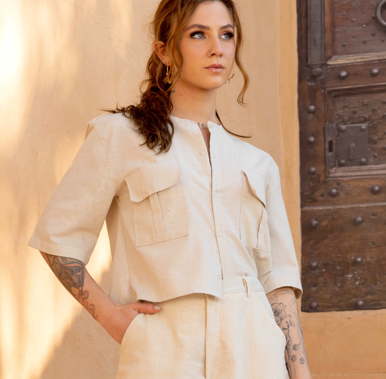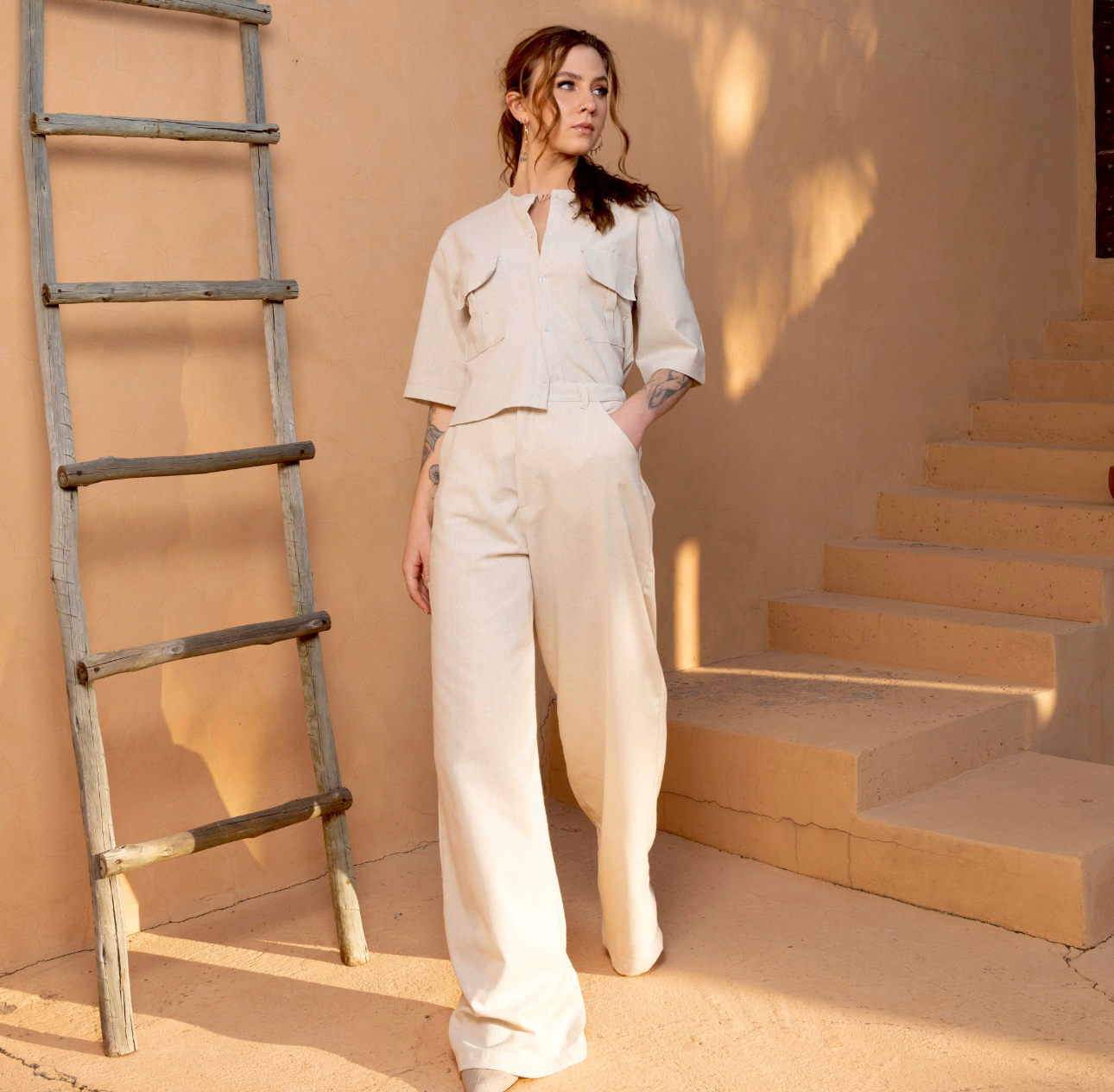 Conjunto composto por Camisa Linho Magnólia e Calça Linho Pantalona Riviera