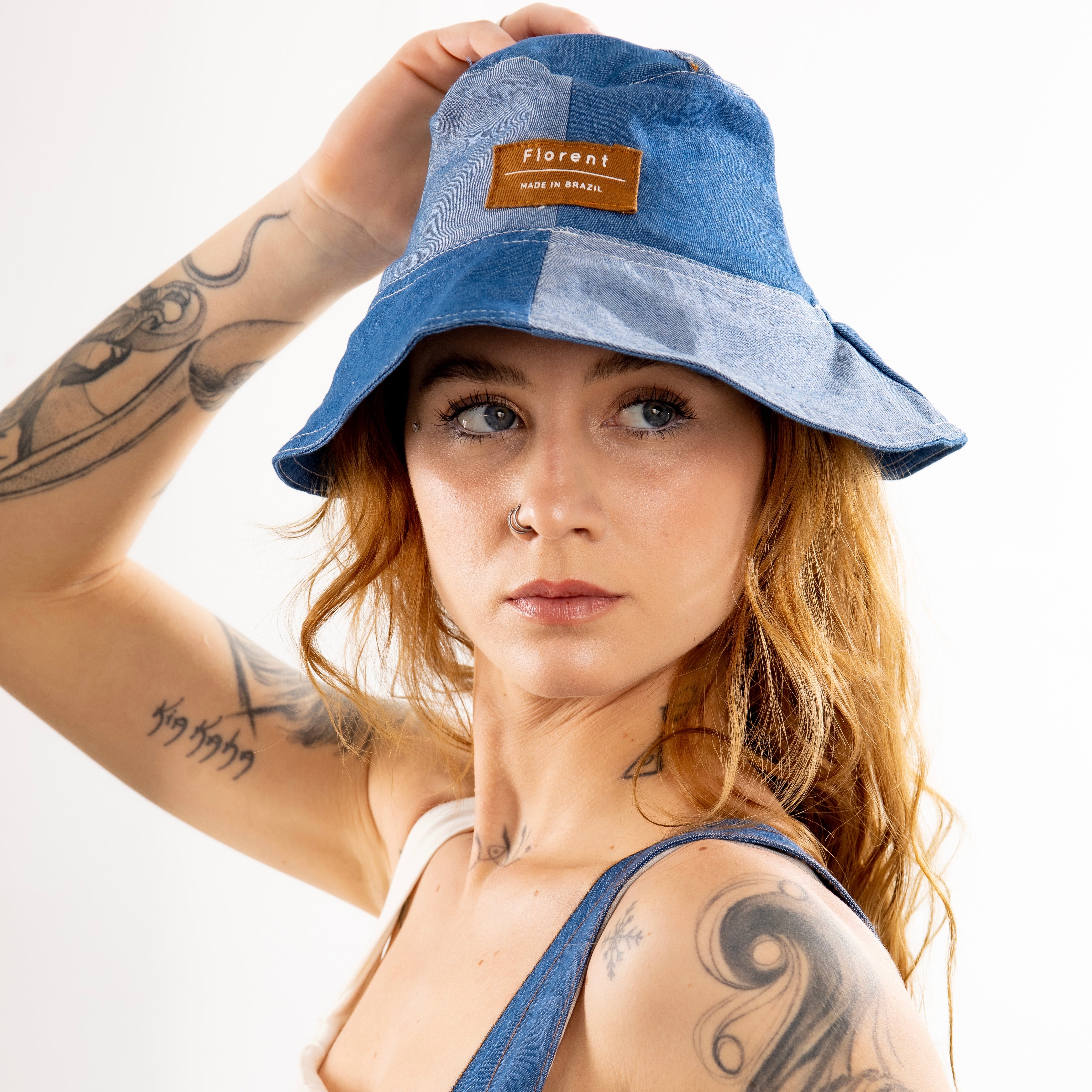 Com um lado liso e outro estampado, o bucket jeans é versátil e fácil de combinar. Feito com material resistente e acabamento de qualidade, é ideal para usar o ano todo.